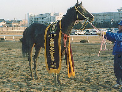 余談ですが、数えてみたら、’02年最も私の被写体になった競走馬は、何を隠そうこの馬です。(’02.12.31撮影)